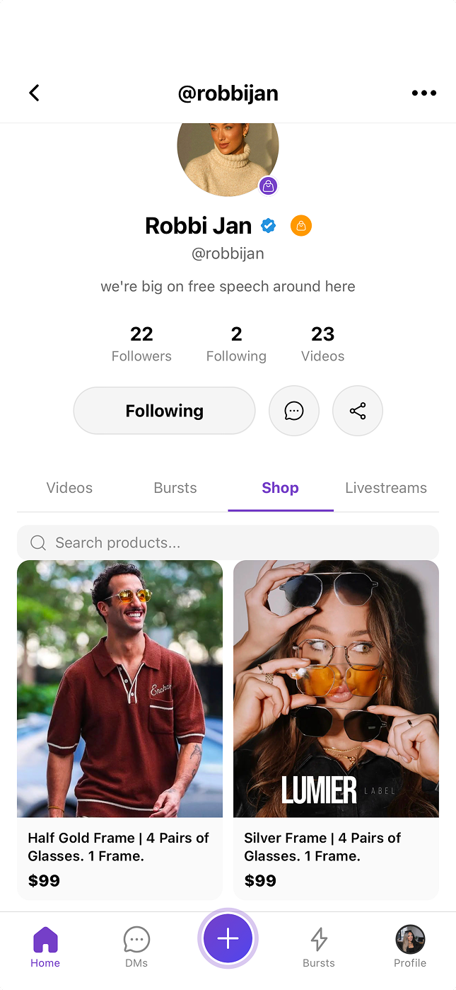 Play is native to the broader Parler experience. If you are already on Parler, Play + Shop gives you a way to build from the audience attention you already have instead of starting from zero somewhere else.